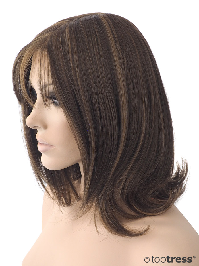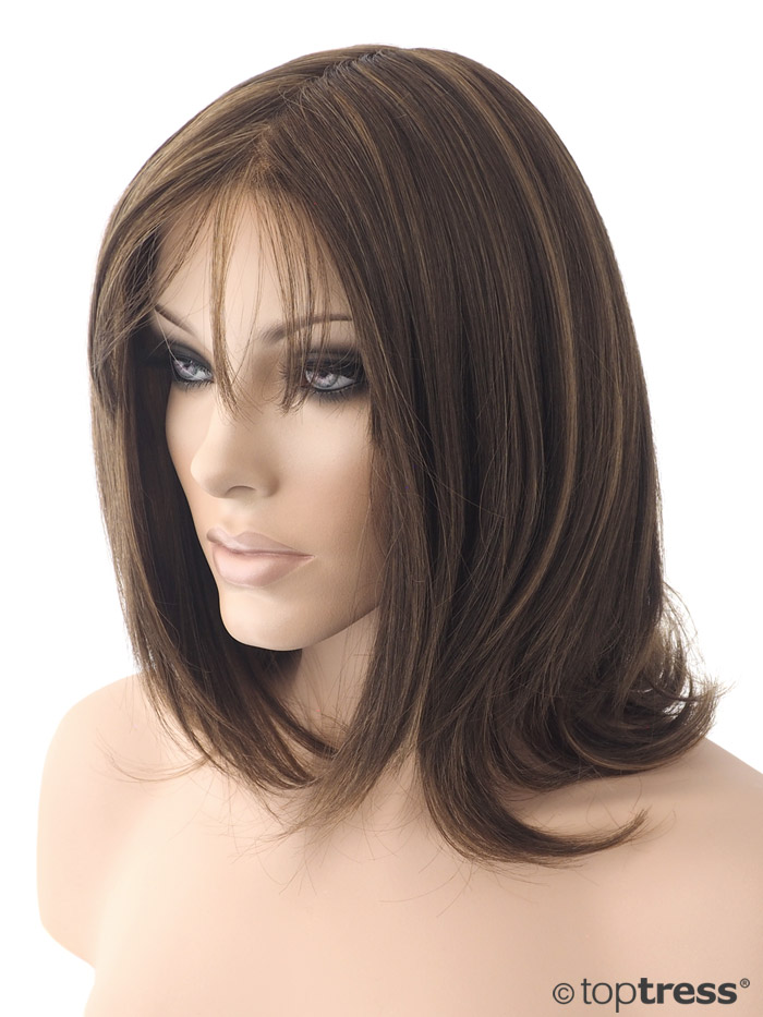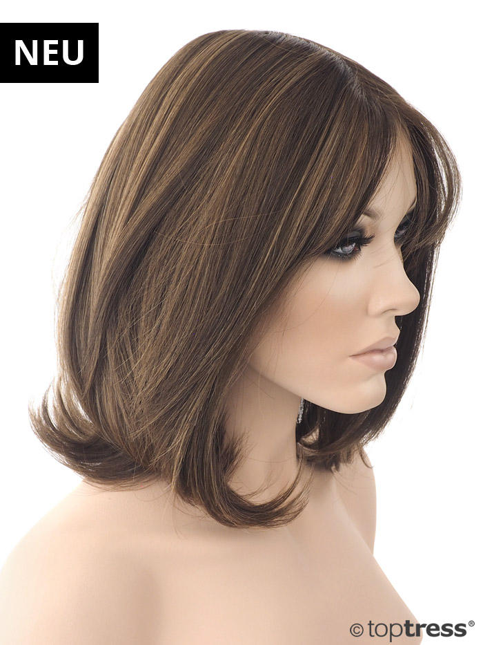 Perücke Dolores mittelbraun mit Highlights, Thermosilk, Lace Front und Scheitel