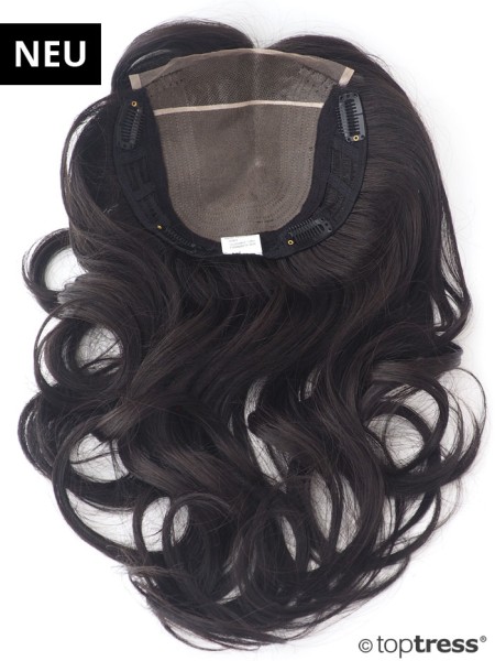 Verleihen Sie Ihrem Haar mit dem Topper Olivia mühelos Volumen und Stil. Dieser Topper aus hochwertigem Thermosilk®-Kunsthaar lässt sich dank seiner Hitzeformbarkeit individuell gestalten, sodass Sie ihn ganz nach Belieben stylen können. Die wellige Struktur sorgt für einen natürlichen, lebendigen Look – perfekt für jeden Anlass.
