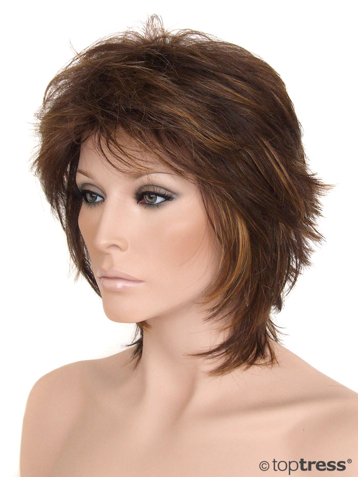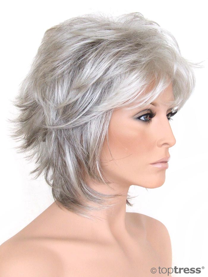kastanienbraune, hellgraue Kurzhaarperücke mit tollem Volumen